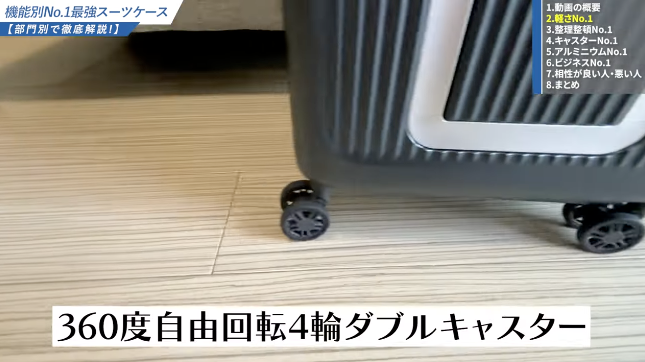 なお、僕のYouTubeチャンネル「スーツケース研究所」では、実物のスーツケースを触りながら詳しくレビューしています。