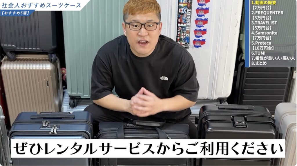 なお、僕のYouTubeチャンネル「スーツケース研究所」では、実物のスーツケースを触りながら詳しくレビューしています。