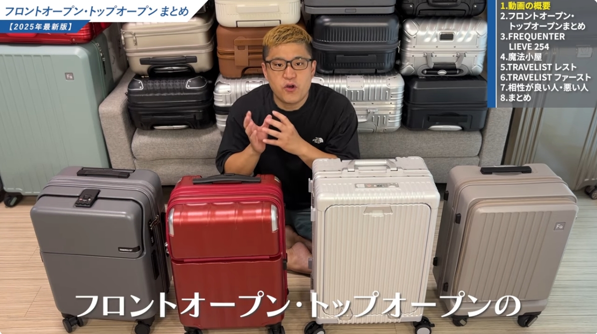 なお、僕のYouTubeチャンネル「スーツケース研究所」では、各フロントオープンタイプのスーツケースを詳しく紹介しています。