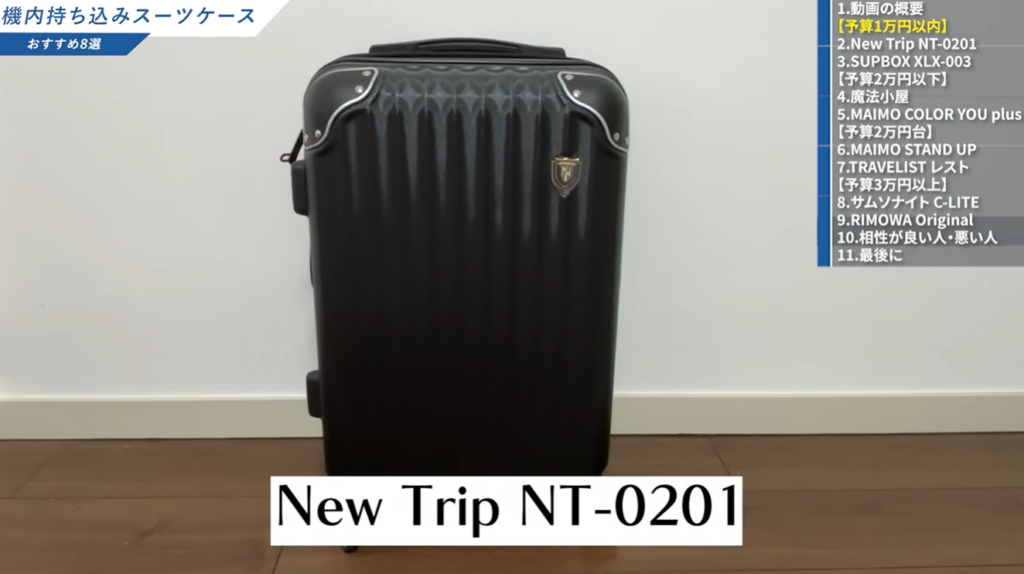 なお、僕自身が1万円台のNew TripのスーツケースをMAIMOと比較した動画があります。