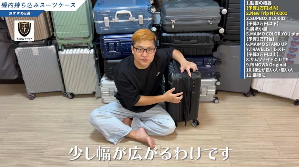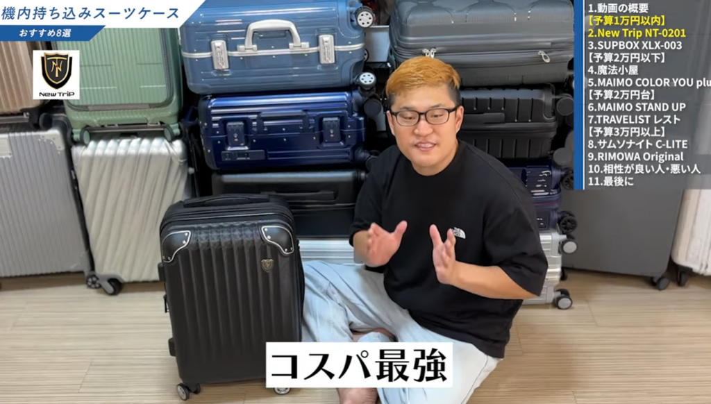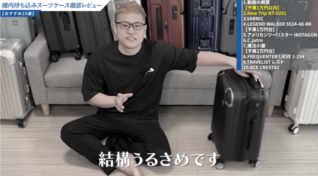 なお、僕のYouTubeチャンネル「スーツケース研究所」では、New Trip以外のメーカーも含めて実物レビューを行っています。気になる方はあわせて参考にしてみてください。