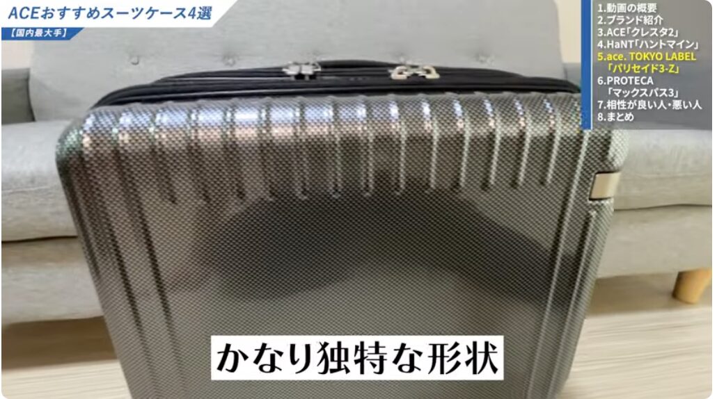 なお、動画「【知らないと後悔】スーツケースはファスナー?フレーム?違いと選び方」では、徹底的にレビューしているので、購入時の参考にしてください。