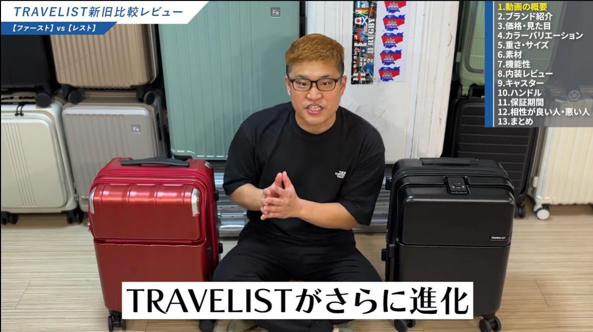 なお、僕のYouTubeチャンネル「スーツケース研究所」では、実物のスーツケースを触りながら詳しくレビューしています。