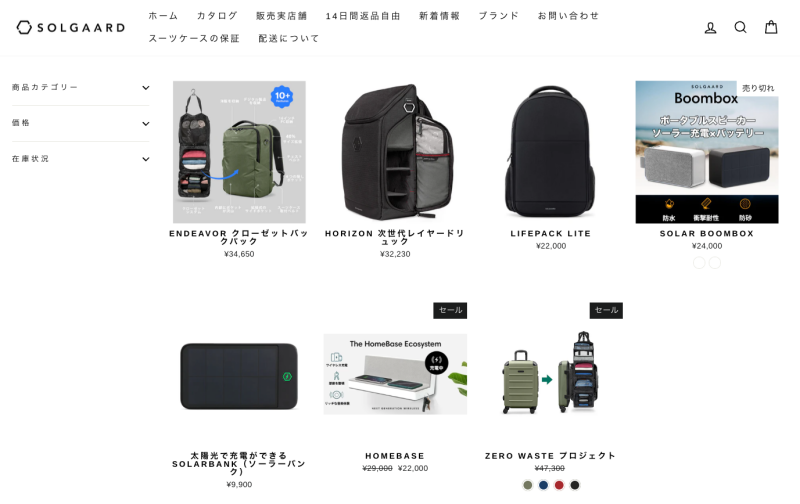 ソルガードの公式サイトでは、スーツケース以外にもリュックやモバイルバッテリーなどの周辺小物も販されています。