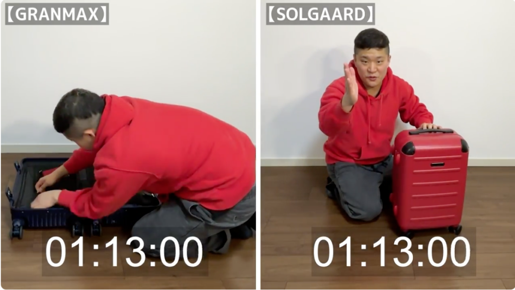 なお、僕の動画『【パッキングストレス解消】ソルガード!NY発の時短スーツケース|SOLGAARD VS ニトリ GRANMAX』では、実際にソルガードの使い勝手を検証しています。